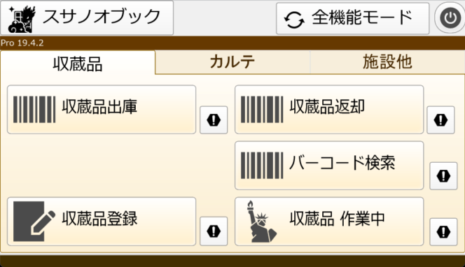 | 返却 | 返却した「収蔵品」の履歴表示。 |